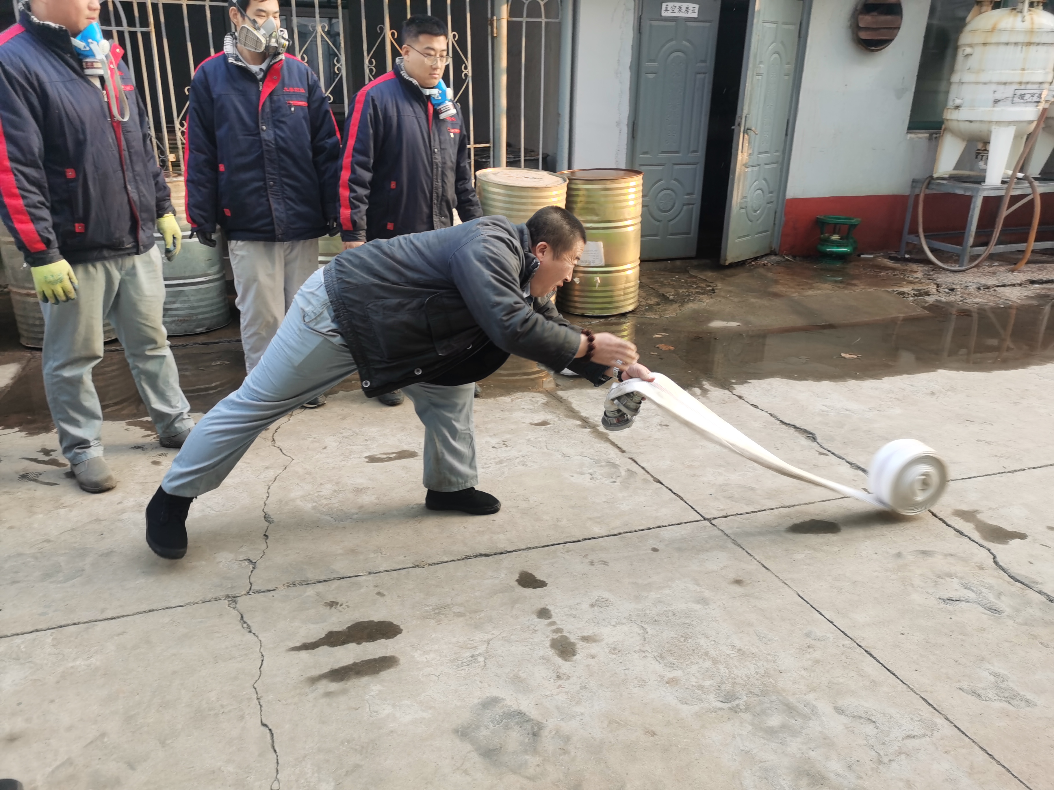 公司原料車間在生產(chǎn)中大量使用多種易燃易爆危險(xiǎn)化學(xué)品,是公司安全管理的重中之重。為了強(qiáng)化車間員工的安全意識(shí),提高員工對(duì)突發(fā)安全事件的快速反應(yīng)、科學(xué)處置、安全施救能力,原料車間于2021年11月7日模擬進(jìn)行了工藝系統(tǒng)火災(zāi)爆炸應(yīng)急救援演練活動(dòng)。