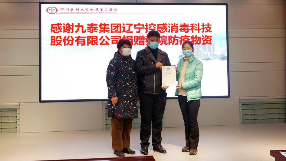 2月11日、25日,錦州九泰集團(tuán)積極踐行企業(yè)社會(huì)責(zé)任,向錦州醫(yī)科大學(xué)附屬一院和附屬三院開展愛心捐贈(zèng)活動(dòng),送去75%乙醇消毒液,有效緩解了新型冠狀病毒疫情防控物資匱乏壓力,發(fā)揮了積極的作用。對(duì)打贏新型冠狀病毒疫情阻擊戰(zhàn)提供了物資保障。