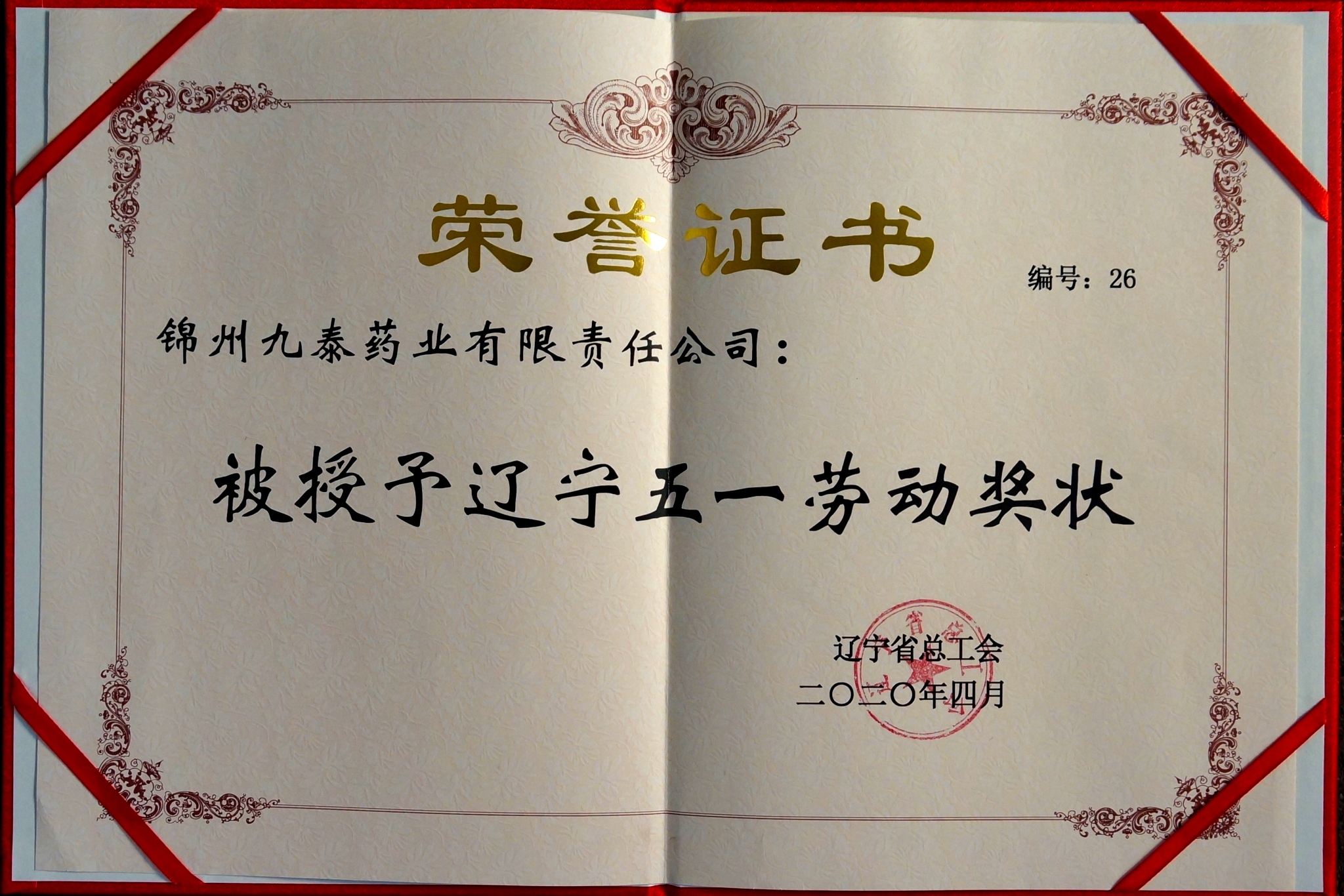 2020年4月,公司被遼寧省總工會授予“五一勞動(dòng)獎(jiǎng)狀”榮譽(yù)稱號。